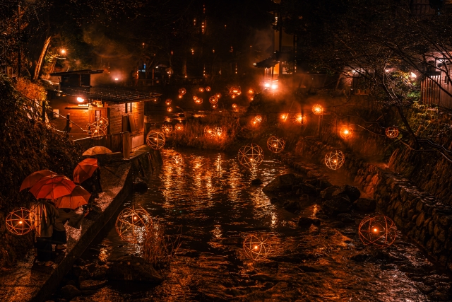 Every winter, Kurokawa Onsen hosts a beautiful illumination event called “Yuakari.”
