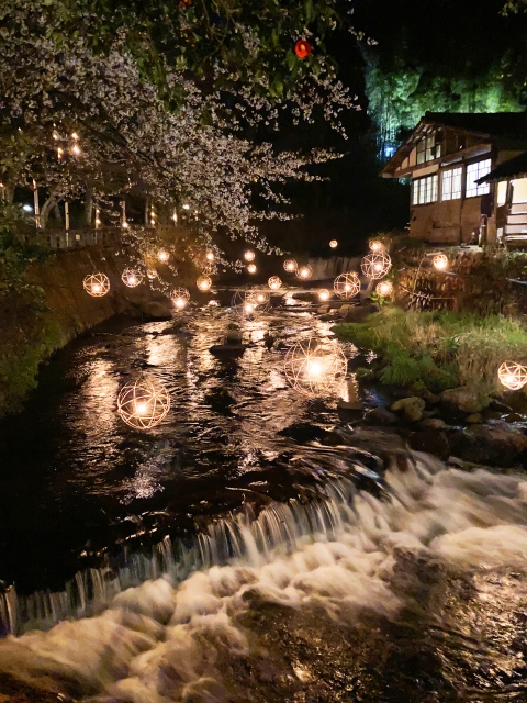 Handmade bamboo lanterns are displayed throughout the town, gently lighting up the streets at night. Unlike flashy city illuminations, Yuakari creates a warm, peaceful atmosphere that perfectly matches the town’s traditional charm.