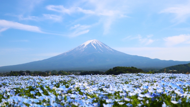 ・Seasonal flowers with Mount Fuji in the background